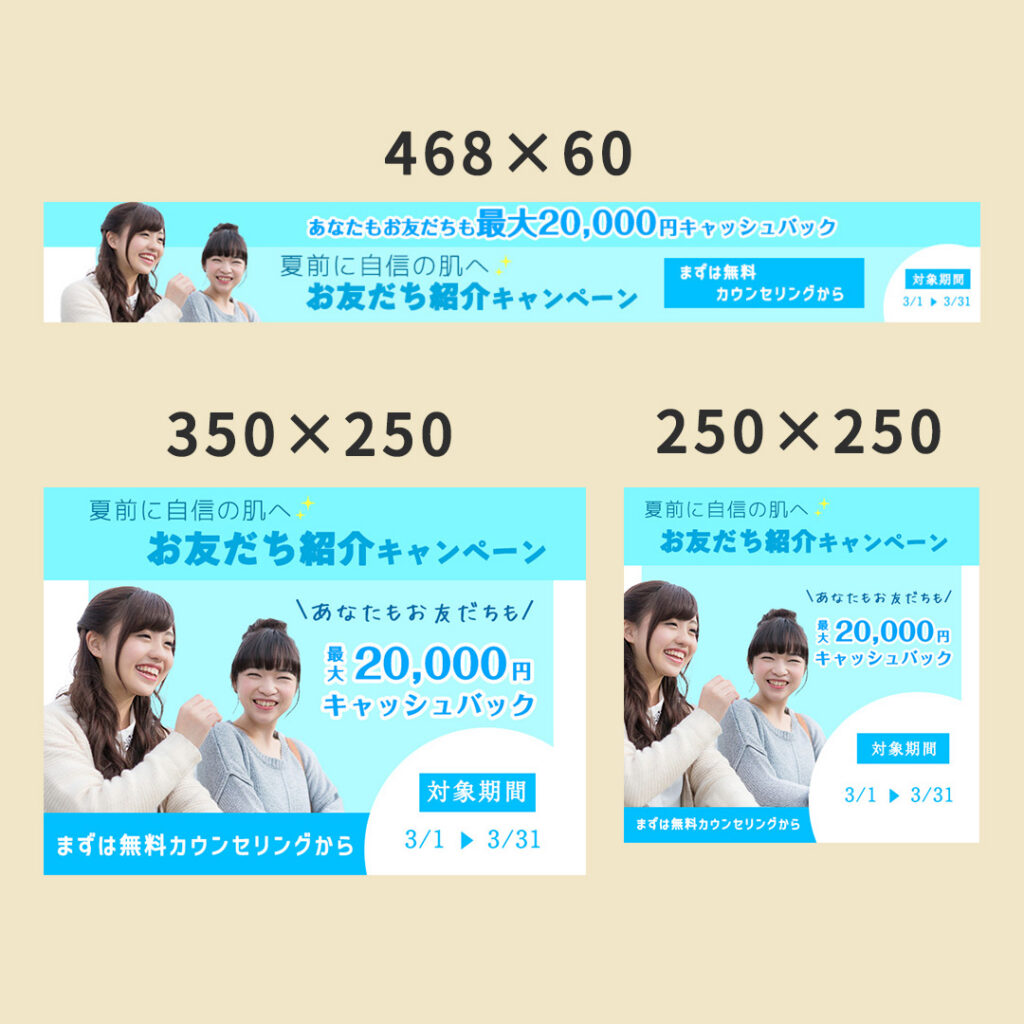 夏に向けての脱毛なので水色をベースにバナー作成しました。